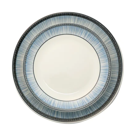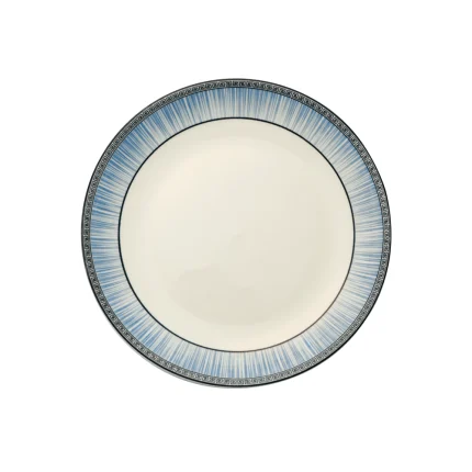 Shanxi Huairen Modern White Ceramic Plate with Blue & Black Radiant Edge