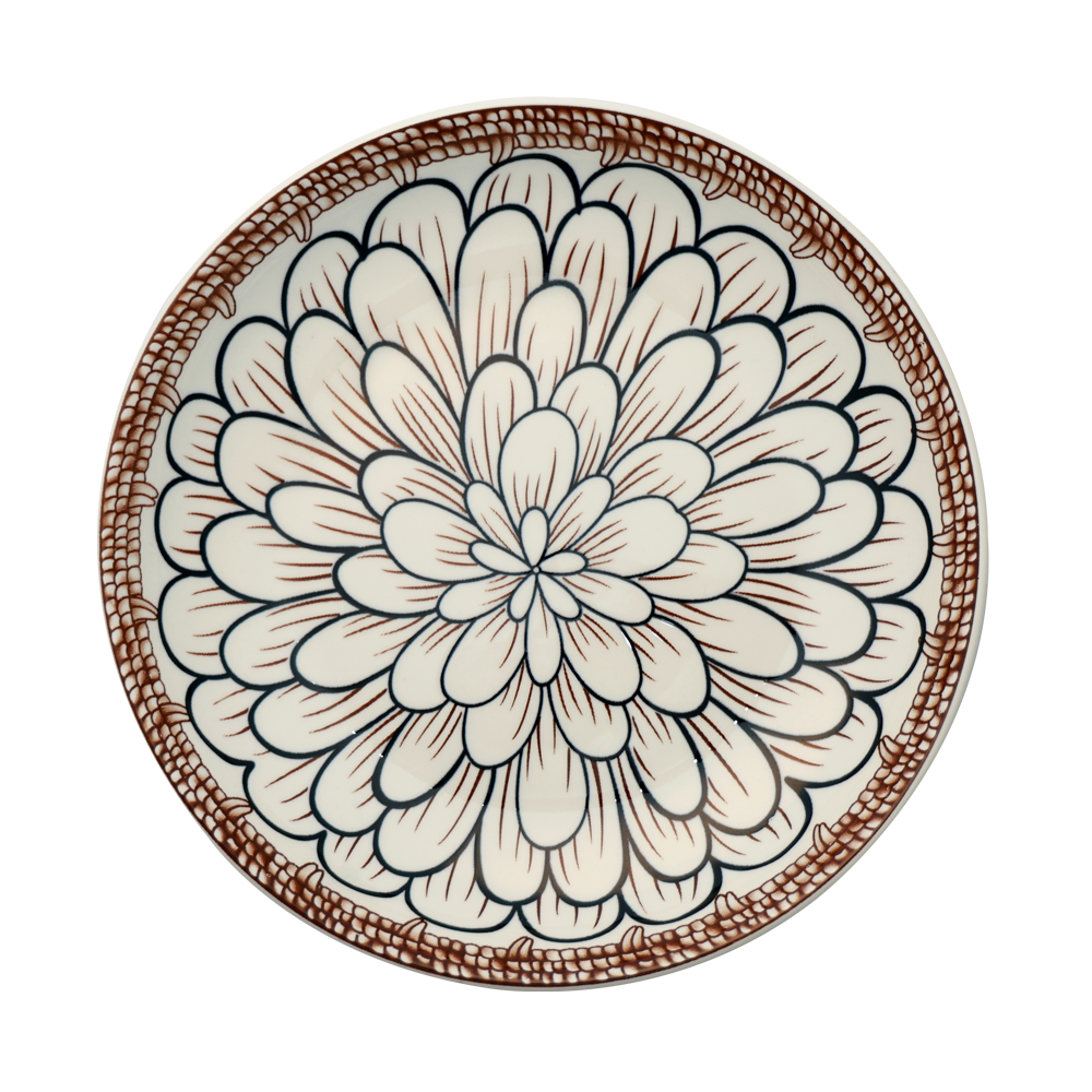 - Vintage Elegance: Features a multi-layered flower design in white and brown, surrounded by a deep brown decorative border, evoking a sense of vintage charm.